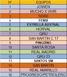 Con los triunfos de Estrella Austral 5-3 sobre Pingüino y de Santos SM vs Academia 6-5 cerró la primera fase. De tal forma que de esta manera quedaron los 16 elencos clasificados a 8vos de final.