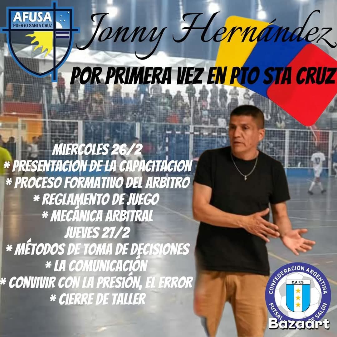 PUERTO SANTA CRUZ.- El 26 y 27 de febrero el reconocido árbitro, Jonny Hernández, visitará Puerto Santa Cruz para llevar adelante una capacitación sobre arbitraje CAFS.