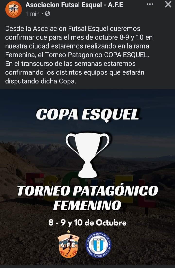 Durante el mes de octubre se disputará en la ciudad de Esquel el Torneo Patagónico 2021 Femenino, organizado por la Asociación Futsal Esquel.