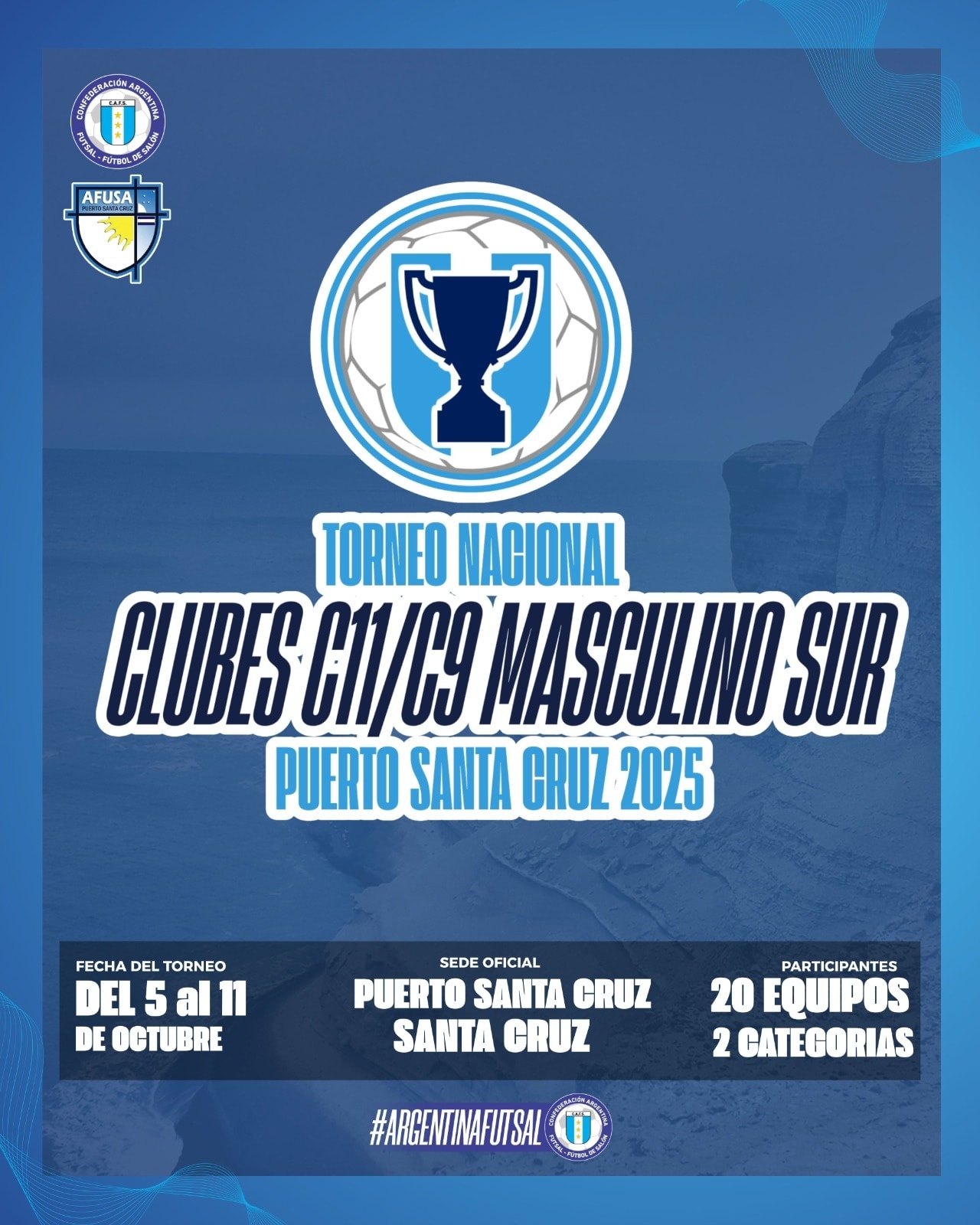 NACIONAL.- Puerto Santa Cruz será sede del Torneo Nacional de Clubes C11/C9 Sur 2025.