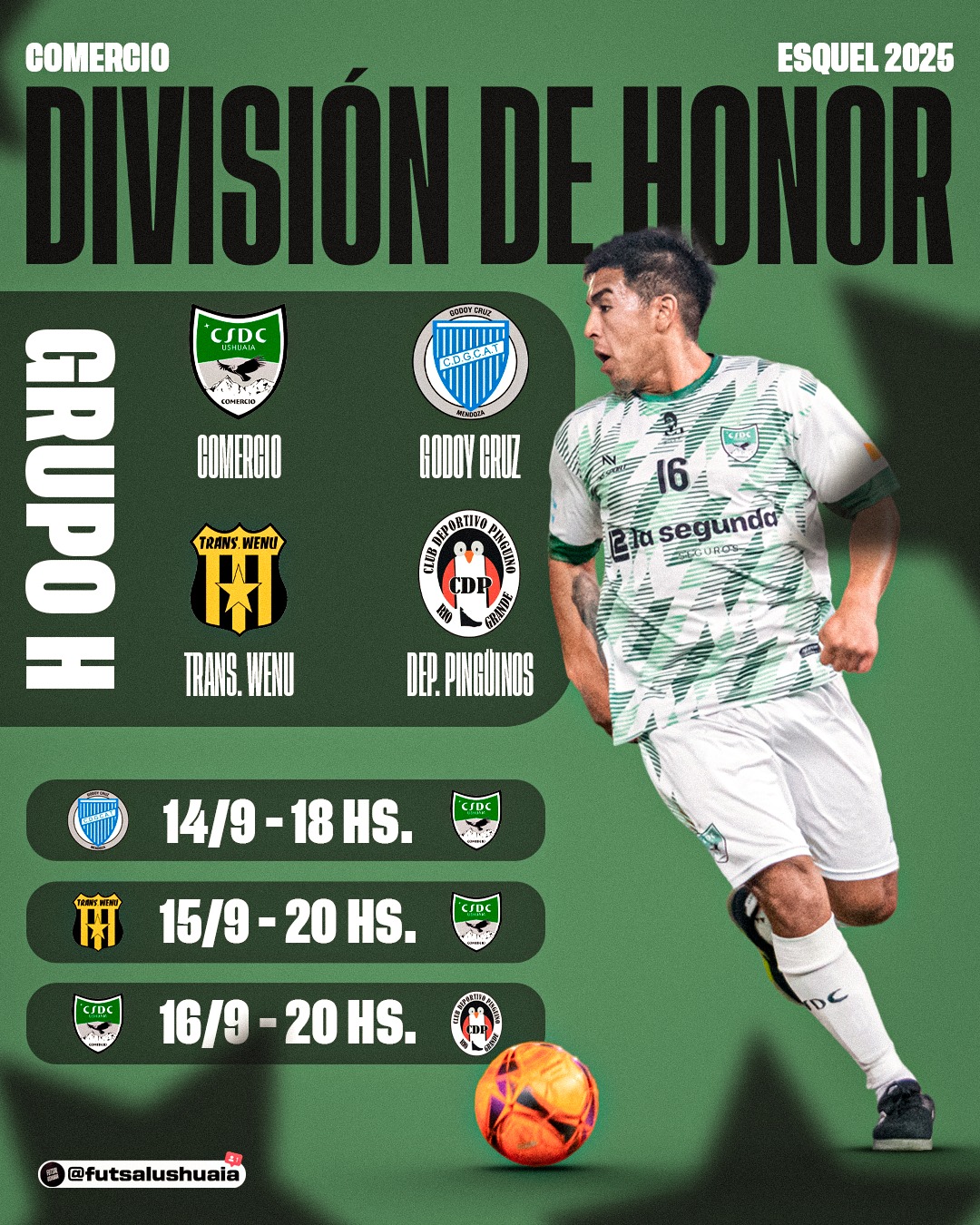Con respecto a los equipos de Rio Grande Pingüino Futsal integra la “Zona H” con Transporte Wenú, Comercio y Godoy Cruz debutando el domingo ante Wenú a las 22hs.