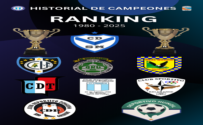 RIO GRANDE.- Finalizada la temporada 2025 vamos actualizando nuestro ranking de clubes campeones desde 1980 hasta el momento. Finalizada la temporada pasada, San Martín se convirtió en el club con más títulos superando a Luz y Fuerza.