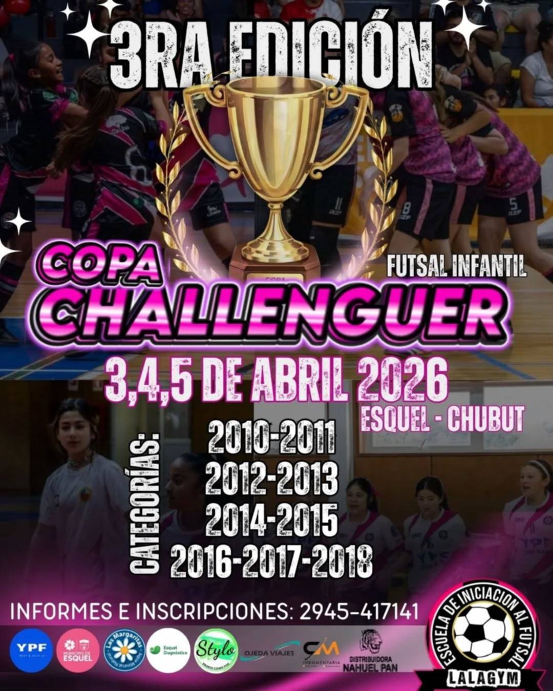 ESQUEL.- En Lala Gym no se descansa. Es que es parte de la gimnasia mantenerse activas. Siempre hay cosas por hacer y objetivos por cumplir. Se viene la tercera edición de la Copa Challenger de Futsal Infantil Femenino y muchos equipos de afuera ya están anotados.
