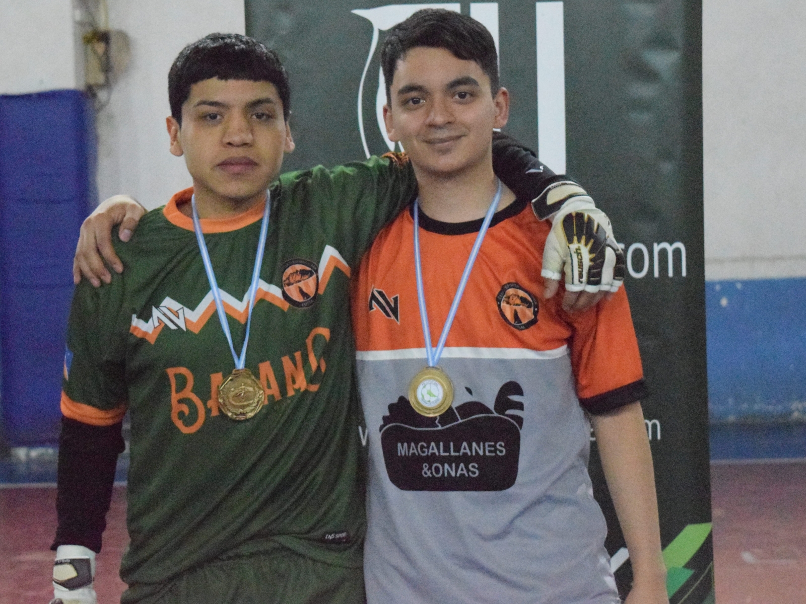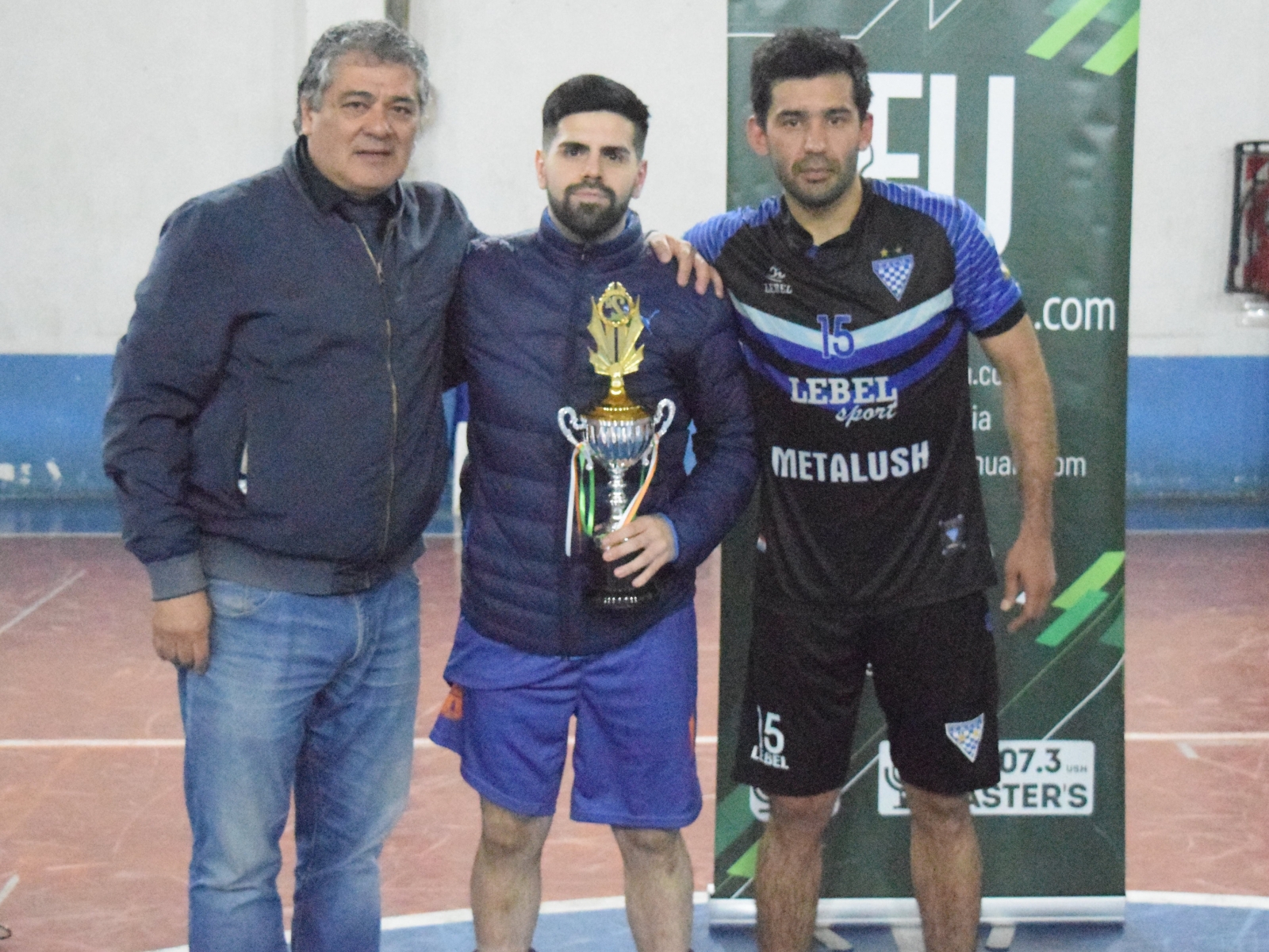Luego "Patán" Bénitez, arquero de Magallanes Azul, le hizo entrega a los arqueros del Deportivo Ushuaia el premio de la valla menos vencida del certamen.