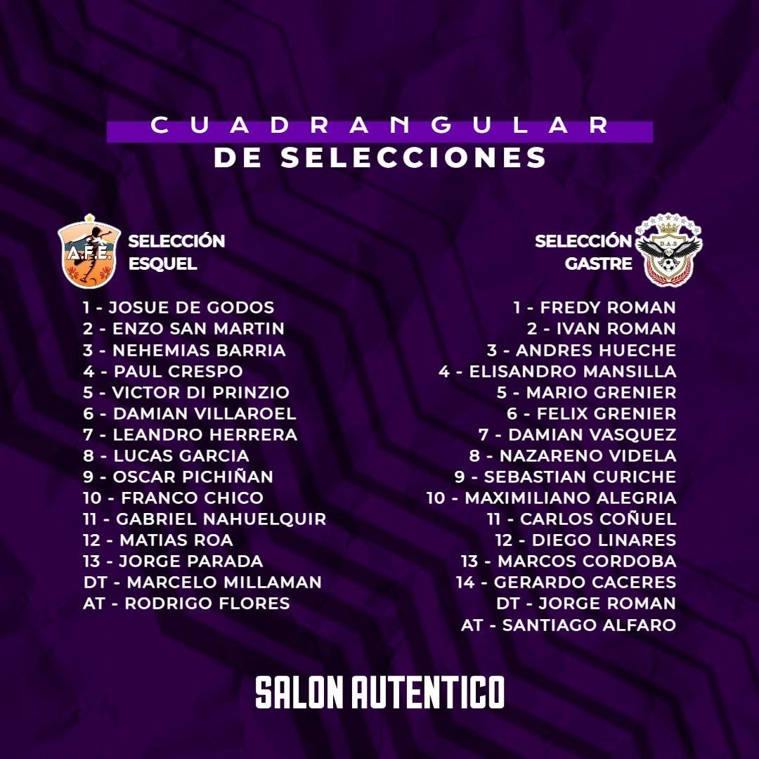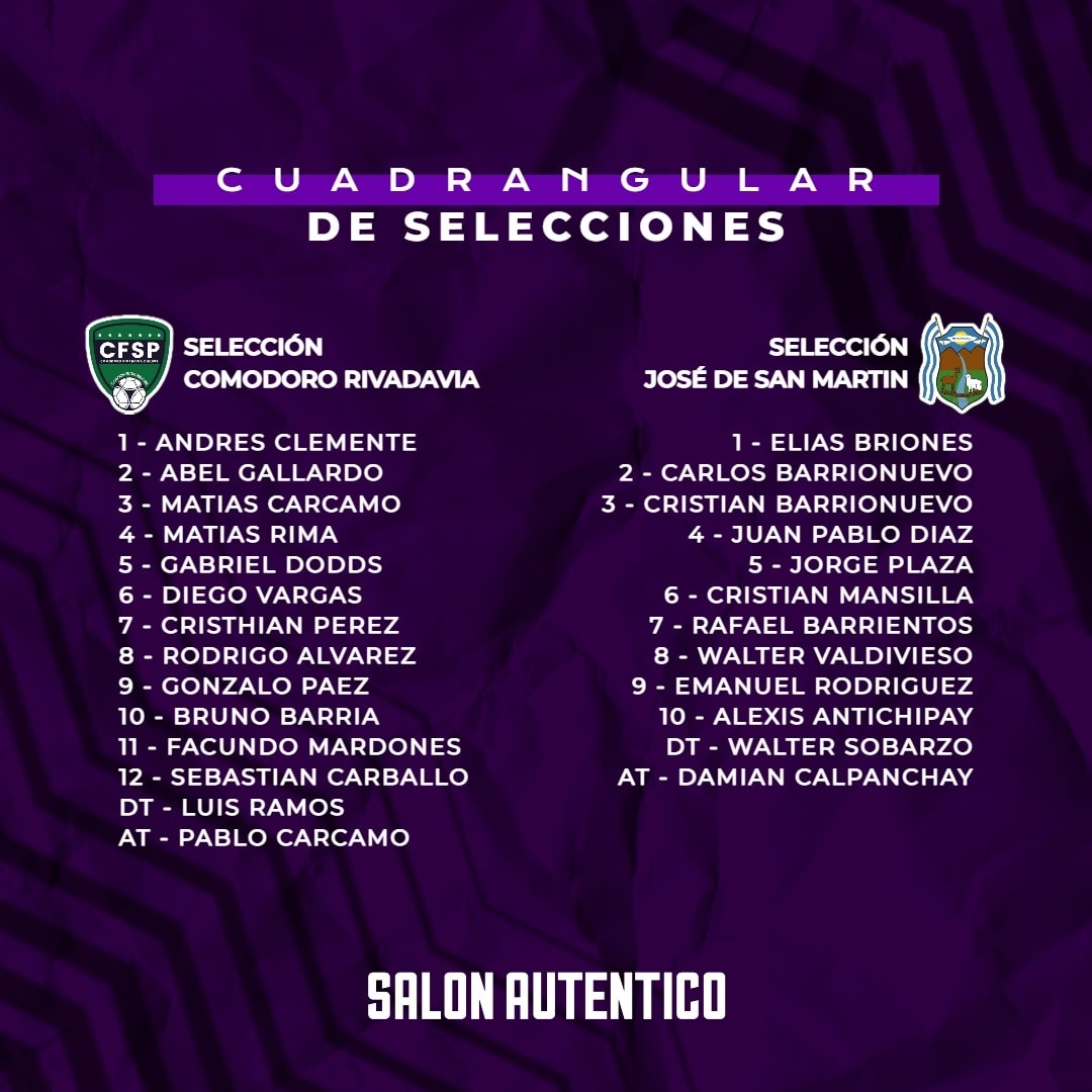 ESQUEL.- Así formarán las cuatro selecciones que disputarán el Cuadrangular Selecciones a partir de esta tarde en nuestra ciudad.