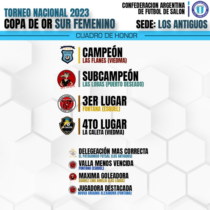 LOS ANTIGUOS Y POSADAS.- Finalizaron los torneos nacionales femeninos Copa Oro Sur y Norte, dejando como saldo a dos campeones de calidad y talento que darán todo en la Divisiòn de Honor de 2024.