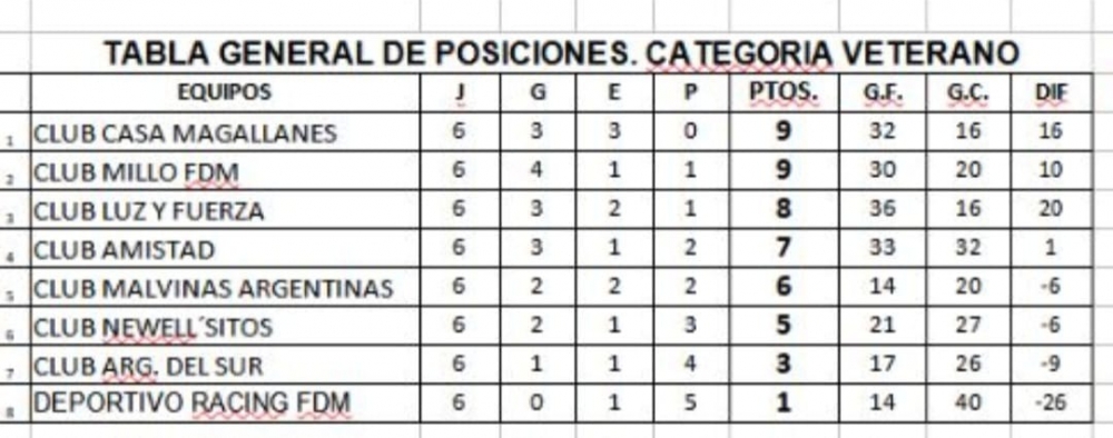 Entre Amistad y Malvinas esta el cuarto clasificado. Los amigos tienen 7 y los Malvinenses 6.